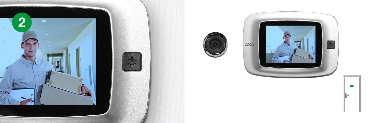 Altijd een veilig gevoel in huis met de AXA Kierstandhouder (1) en de AXA Digitale Deurspion (2).